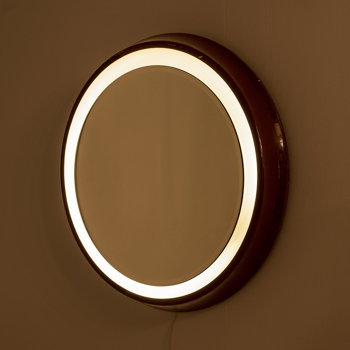 Eleganter, beleuchteter runder Wandspiegel der späten 1960er Jahre.
