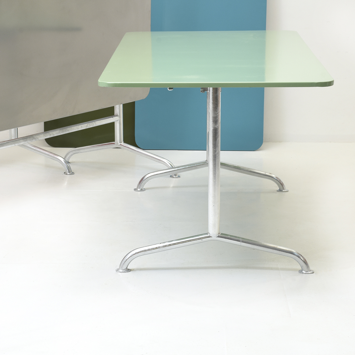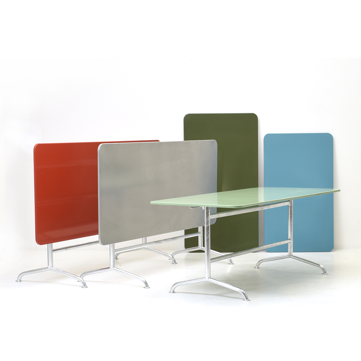 Unterbau feuerverzinkt, Tischplatte pulverbeschichtet. Kleinproduktion.