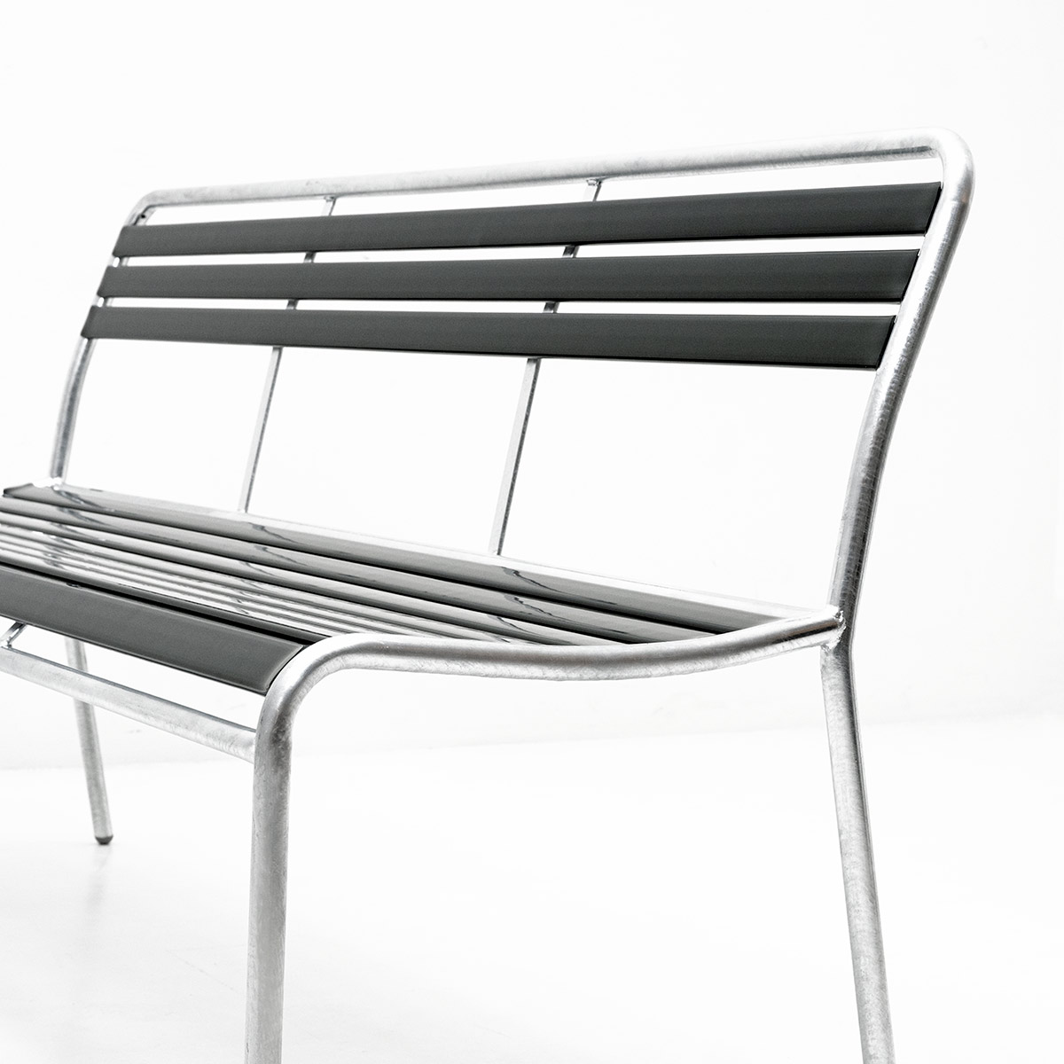 Die robuste Manufakt Gartenbank mit Kunststofflatten ist in diversen Ausführungen erhältlich. Mit oder ohne Armlehne und Rückenlehne. Optional auch Holzlatten verfügbar.