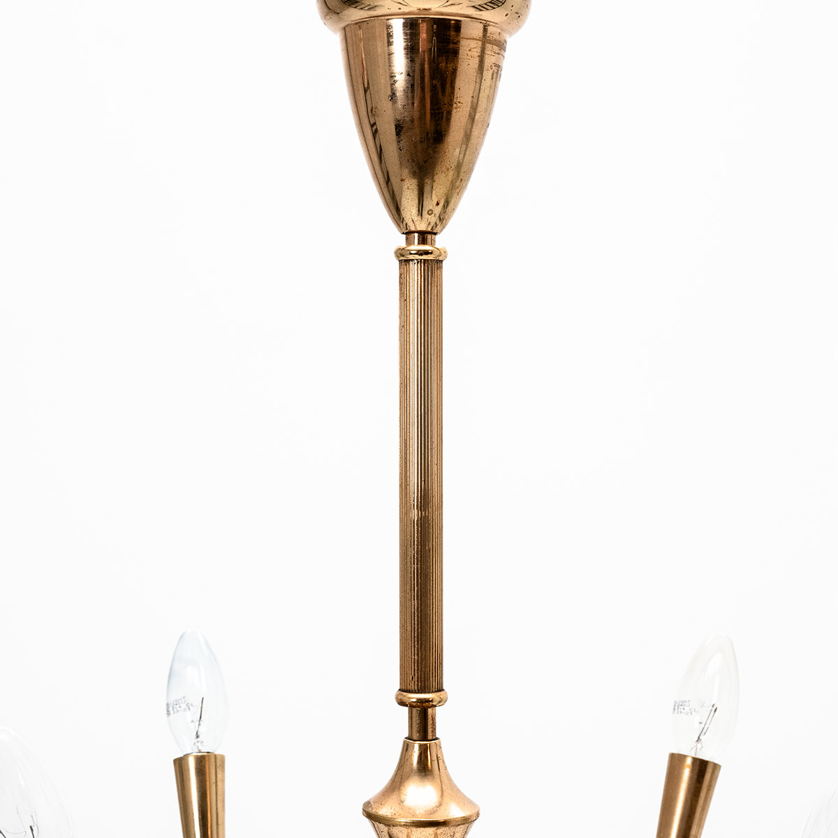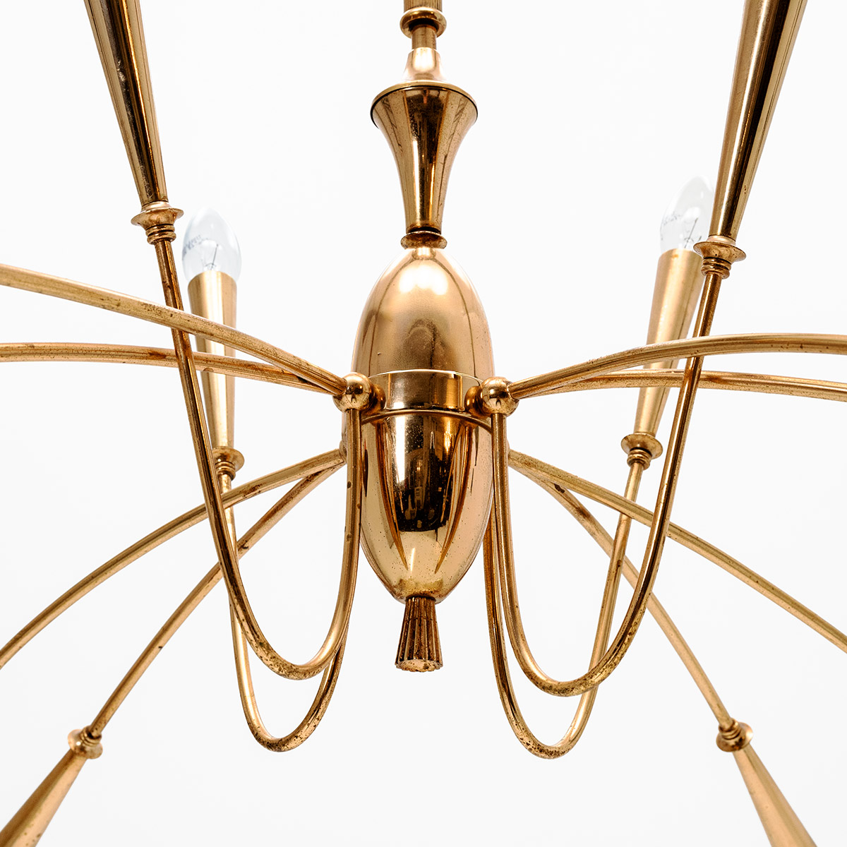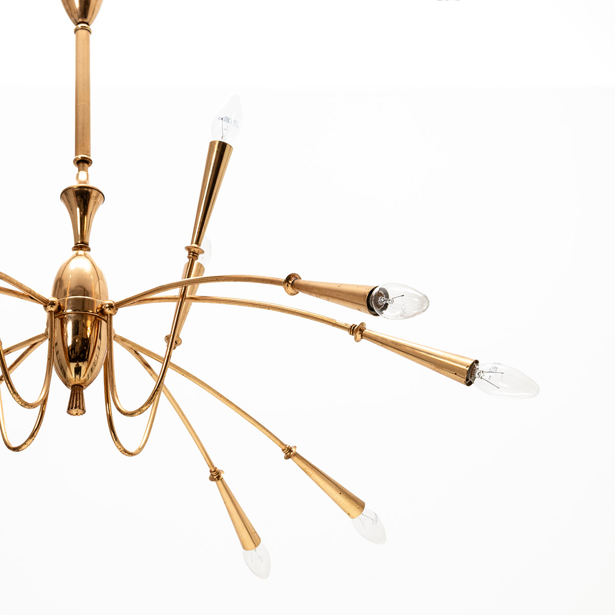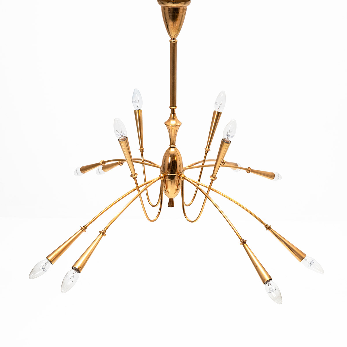 12-flammiger Kronleuchter, davon acht Leuchten nach unten ausgerichtet, vier nach oben.