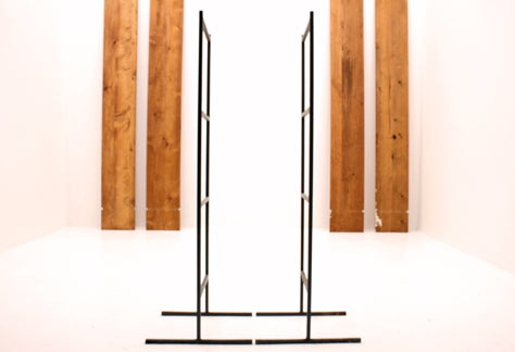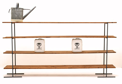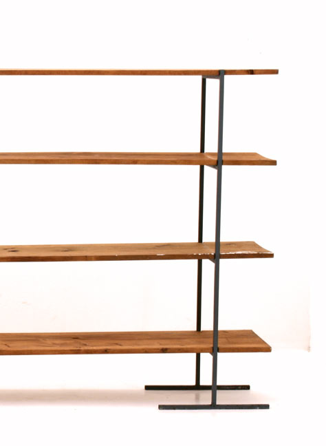 2 Ständer aus 4Kant Stahlprofilen und Tablaren aus Tannenholz.