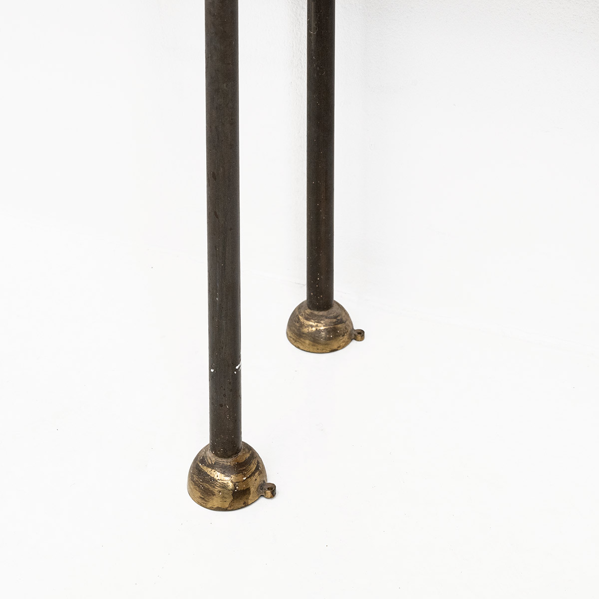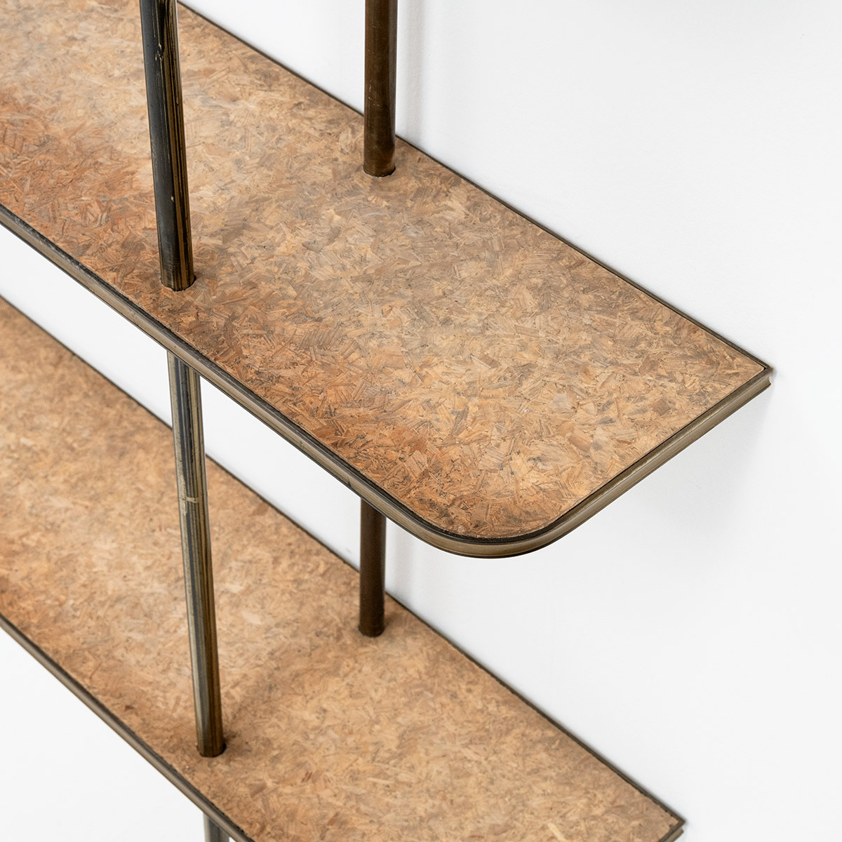 Gefertigt aus hochwertigem Sperrholz und veredelt mit Messingdetails, bietet es fünf Tablare für vielseitige Nutzung.