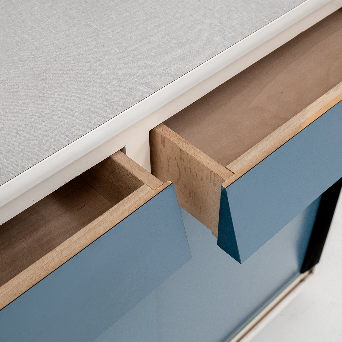 Lackiertes Holz in Beige mit graublauen