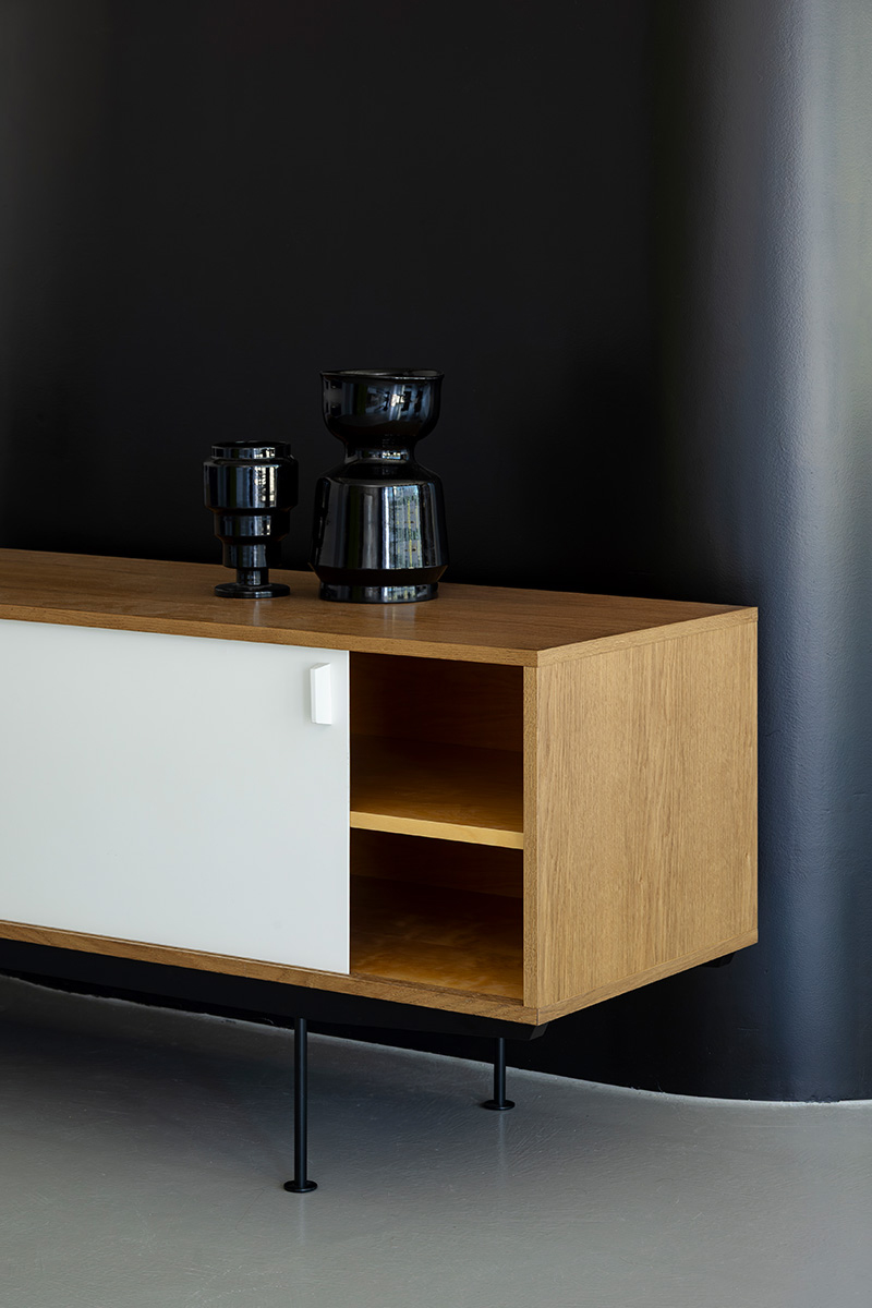 Das Dieter Waeckerlin Sideboard Sesam ist ein zentrales Frühwerk von Dieter Waeckerlin aus dem Jahre 1957. Es besticht durch seine zeitlose Eleganz und klare Formgebung.