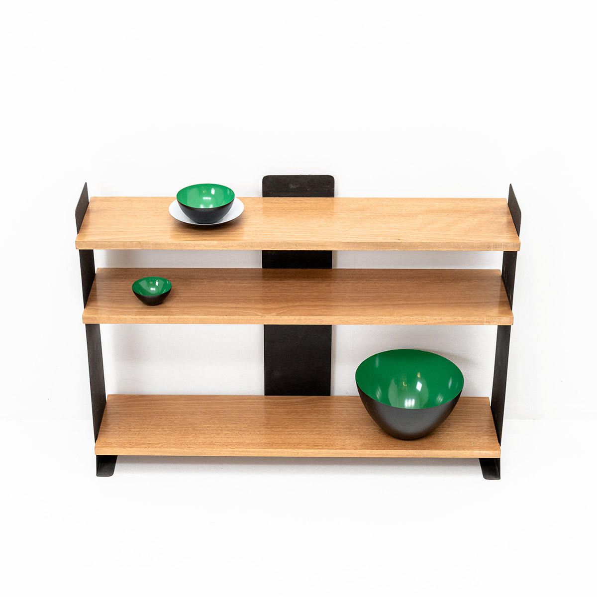 Kleine Ausführung des modularen Kienzle Regals. Entwurf ca. 1931 von Wilhelm Kienzle für Embru. Ikonisches Schweizer Systemmöbel der 1930er Jahre.