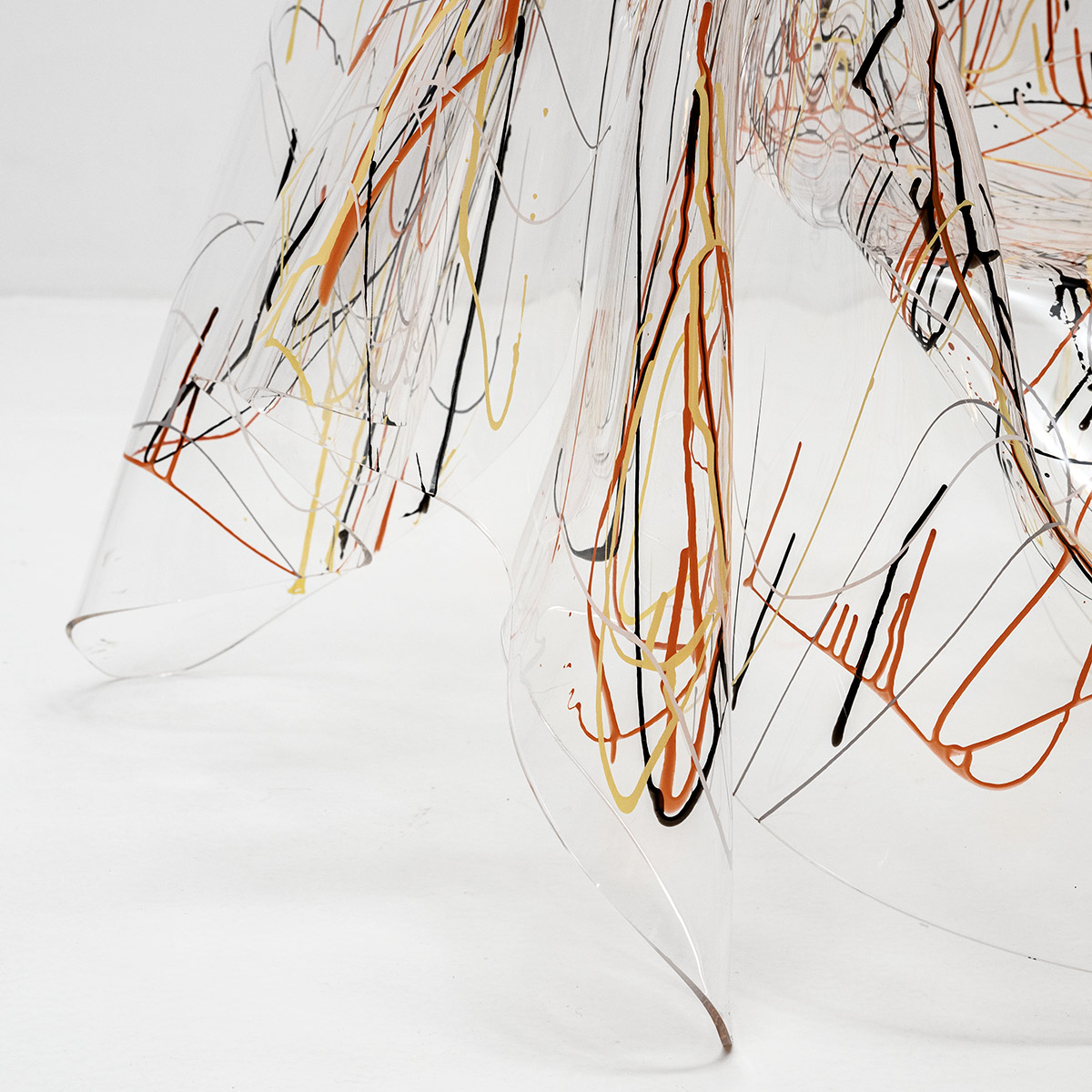Acrylglas (PMMA) ist ein hochwertiger, glasähnlicher Kunststoff, der besonders für seine Kristallklarheit, Stabilität und Langlebigkeit geschätzt wird. In Möbelobjekten wird dieses Material genutzt, um organische, beinahe schwebende Formen zu realisieren, die traditionelle Sitzmöbel neu definieren und starke visuelle Akzente setzen.