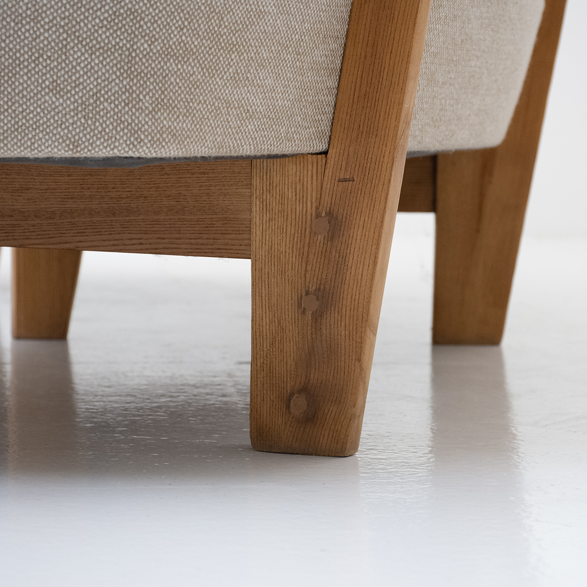 Entwurf 1949. Produziert wurde es nur bis 1957. Eichenholz-Unterbau und Federkern