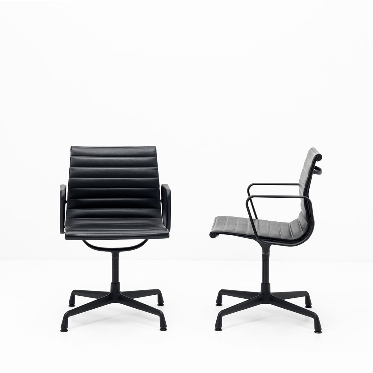 Ein Klassiker, der Bürosessel mit Armlehnen, der EA 104 von Eames.