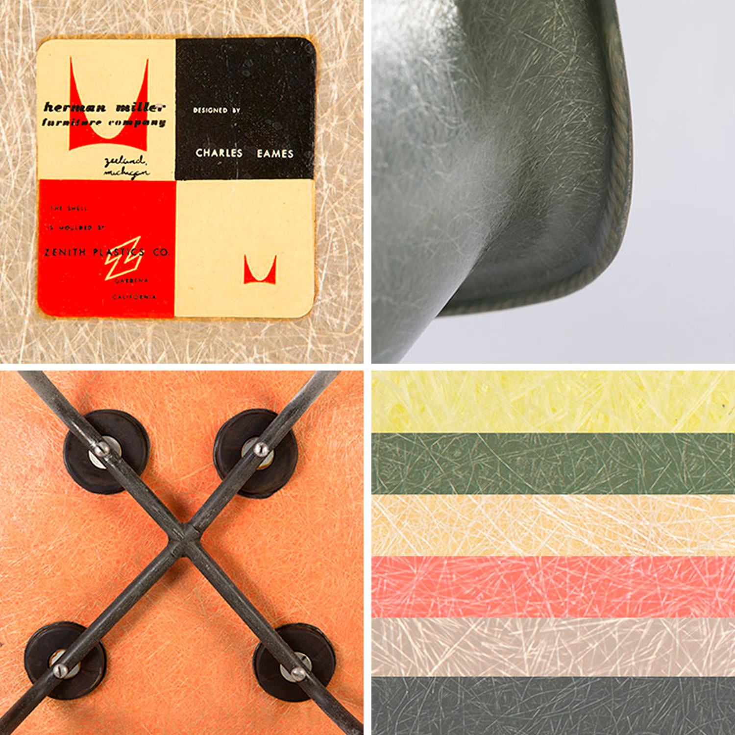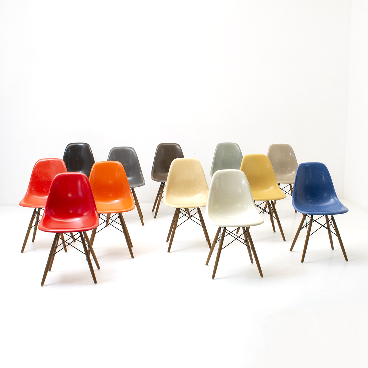 Eames Side Chairs aus Fiberglas in verschiedenen Farben, produziert von Herman Miller in den 1960/70er Jahren.
