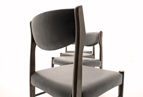 Palisander Holzrahmen. schwarzes Kunstleder.