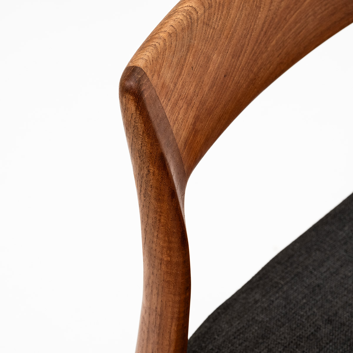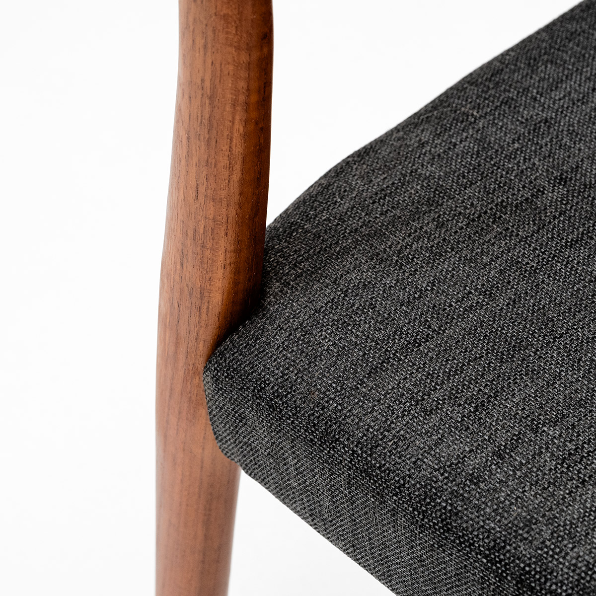 Sitzfläche aus edlem schwarzem Wollstoff.