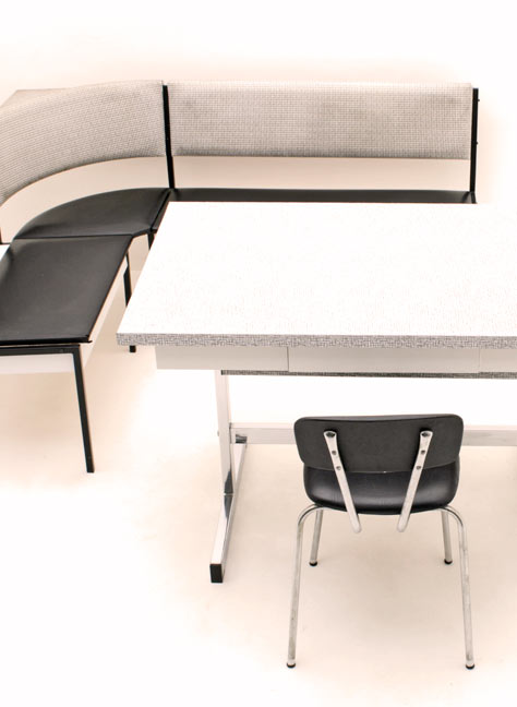Tisch ausziehbar. Eckbank mit klappbarer Stizfläche für zusätzlichen Stauraum.