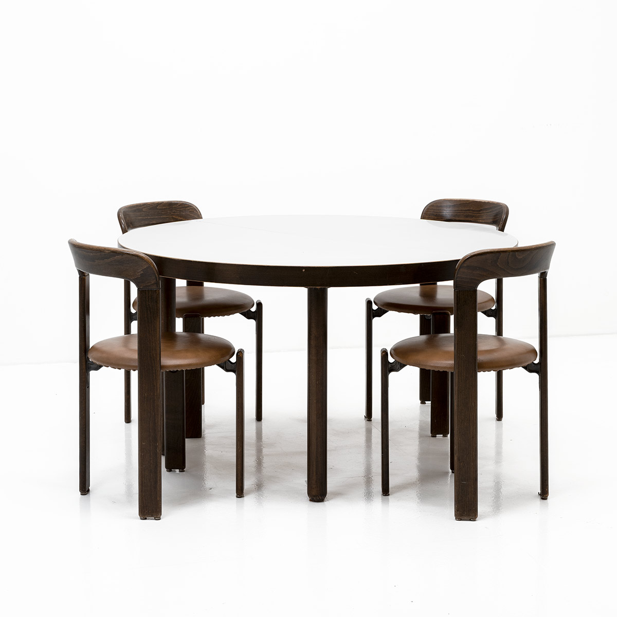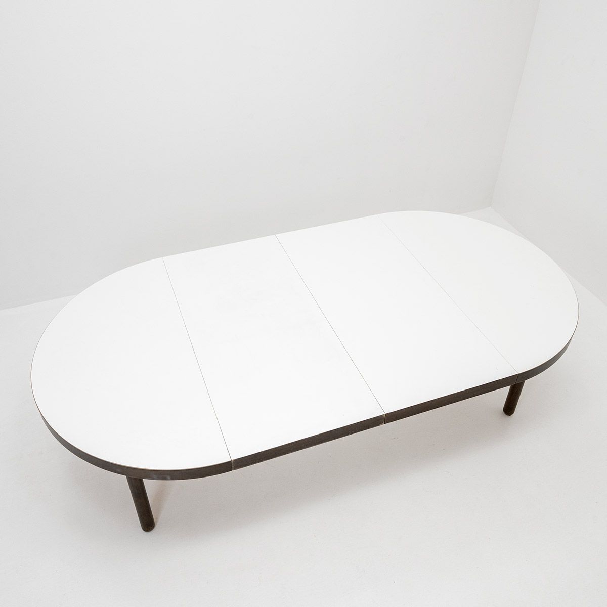 Seltener, ausziehbarer rund/ovaler Esstisch mit zwei Einlagen von Bruno Rey