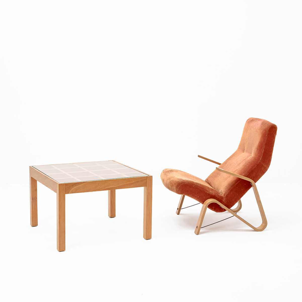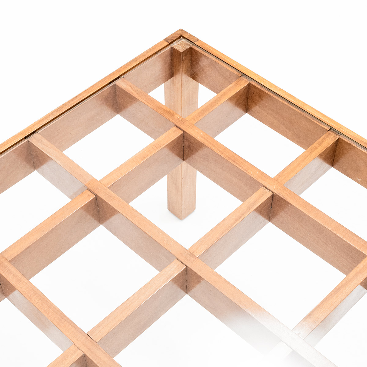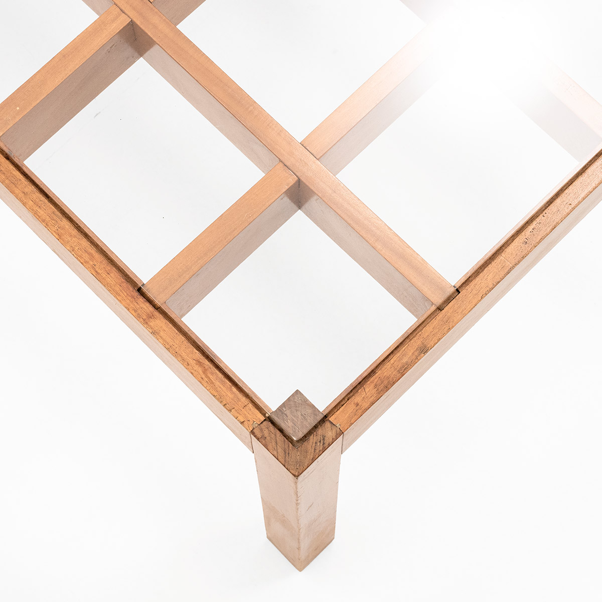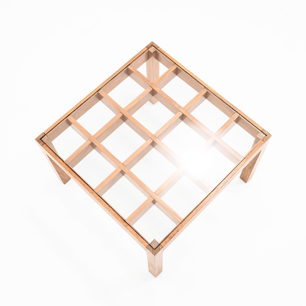 Beinen und eingelegter Glasplatte.