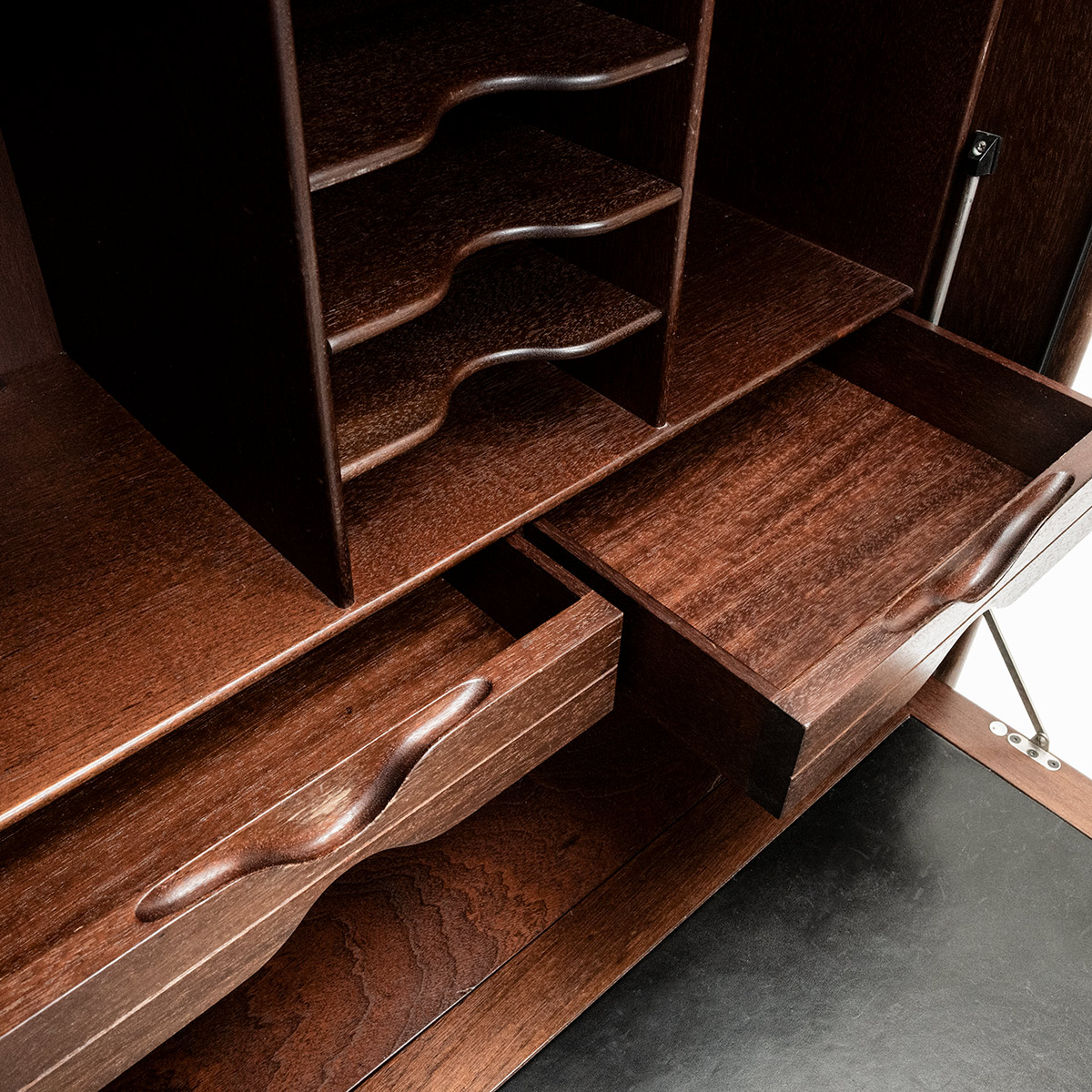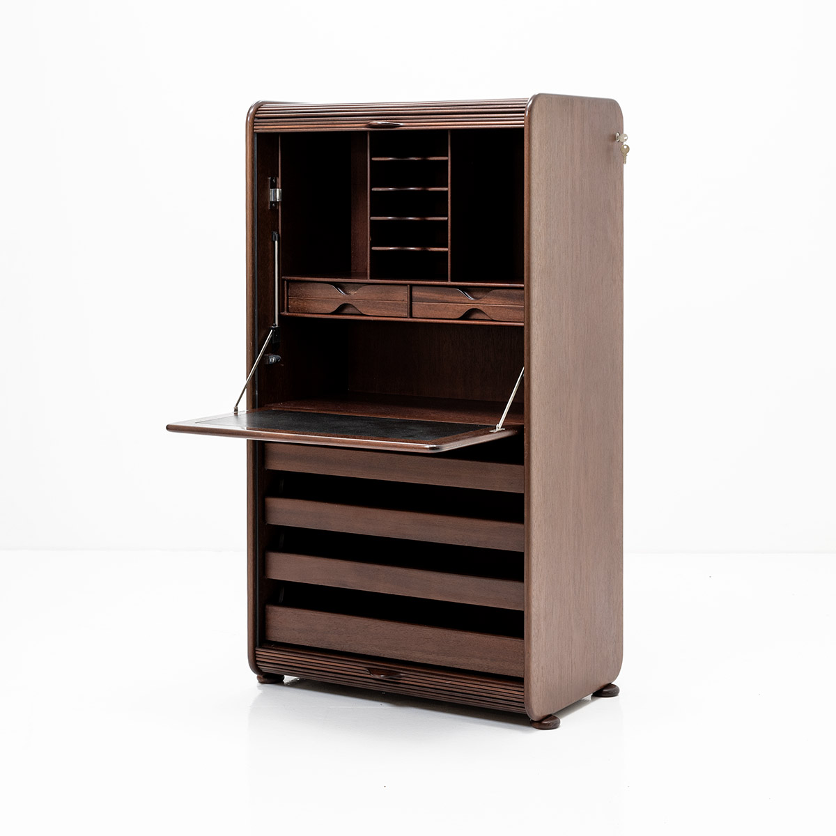 Hinter den präzise geführten, mit Zylinderschloss abschließbaren Doppel-Rolladen finden Ordner und Akten stilvoll