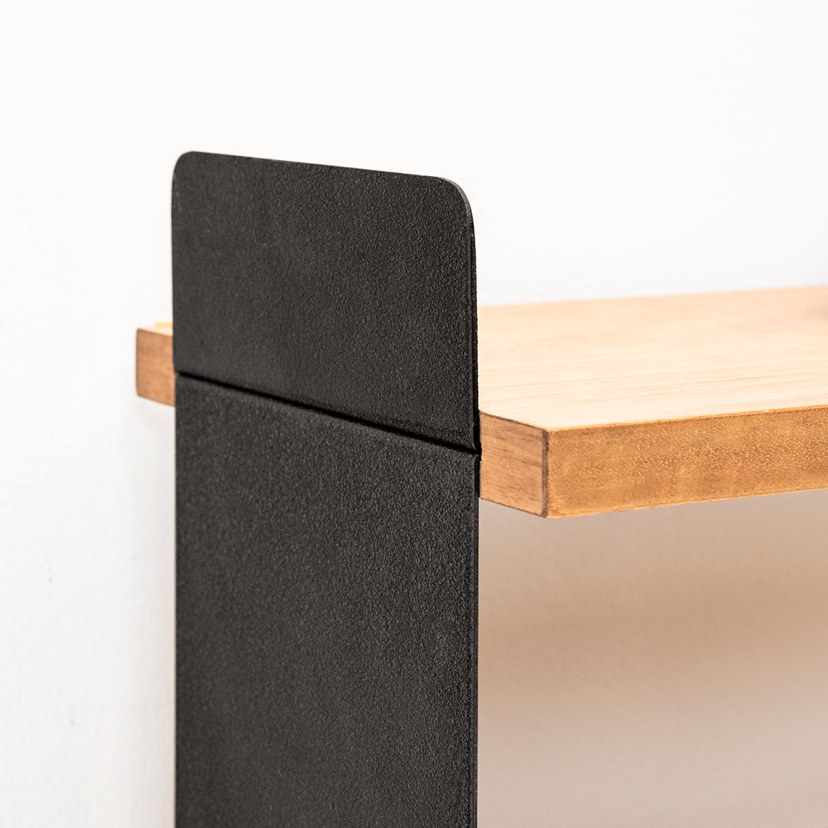 Warme Holzfarbe im spannenden Kontrast zum Metall.