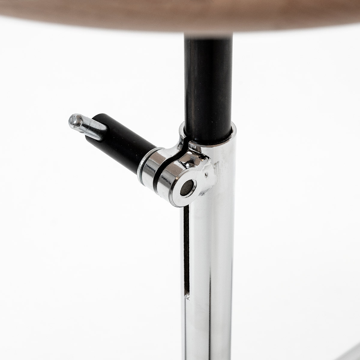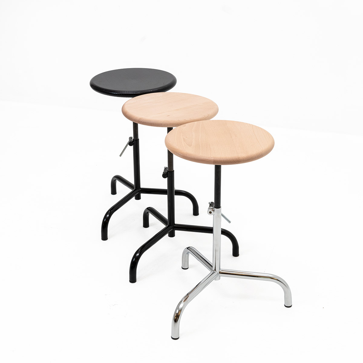 Höhenverstellbarer Stahlunterbau verchromt oder schwarz lackiert.